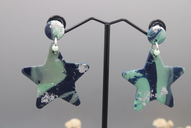 Réalt earrings in navy, turquoise + metallic silver. Lightweight, hypoallergenic earrings handmade from polymer clay.